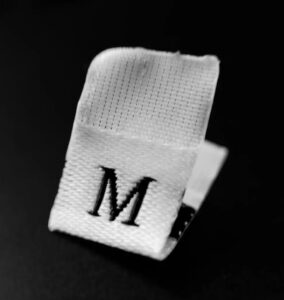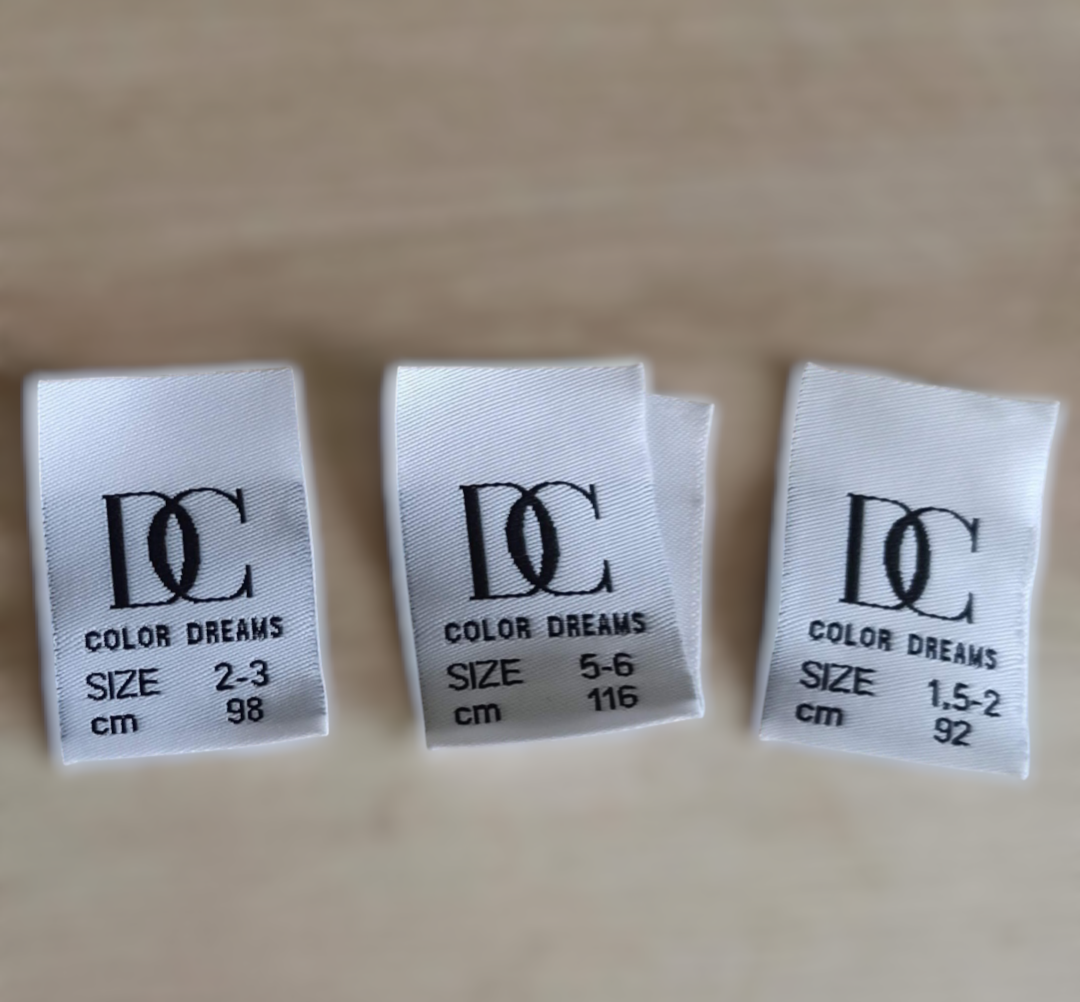 - Жакардові розмірники: Зазвичай використовуються в дорогих або брендових моделях одягу. Вони м’які, приємні на дотик і довговічні, добре витримують прання та зношування.